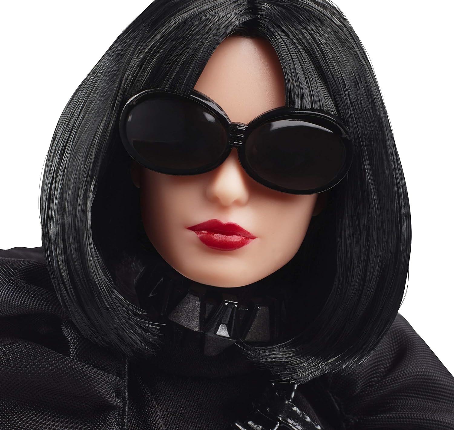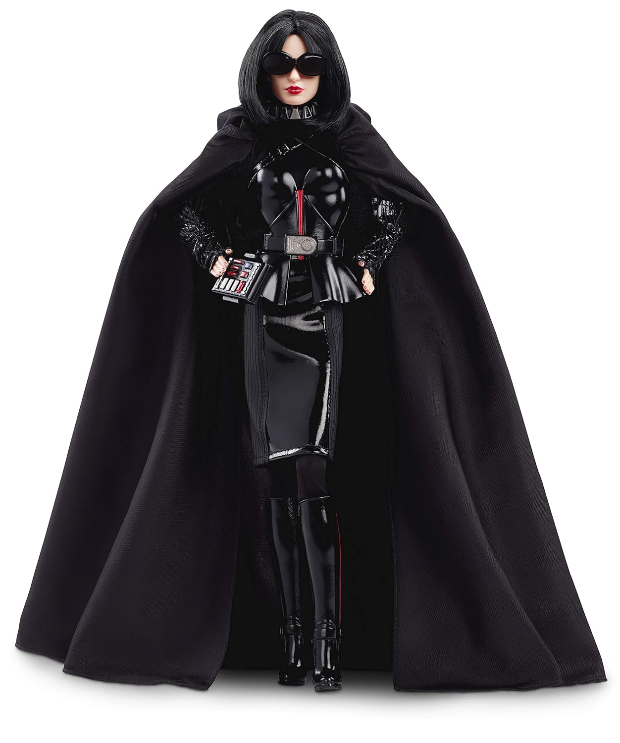 Lalka Barbie inspirowana postacią Dartha Vadera wygląda fantastycznie! Od razu wiadomo, jaką postać reprezentuje. Czarny strój lalki wzorowany jest na zbroi noszonej przez Sithów. Lalka ma na sobie błyszczący czarny top z falbaną, ołówkową spódnicę, czarne kozaki i czarny płaszcz. Przeciwsłoneczne okulary w połączeniu z jej fryzurą przypominają maskę noszoną przez Dartha Vadera, a jej torebka wygląda jak maszyna umożliwiająca mu oddychanie.